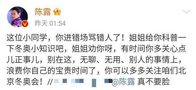 因与近期某娱乐圈事件女主同名,花滑世界冠军陈露被无端牵连。不少网友“走错片场”,在她的社交媒体账号下指责甚至谩骂。在遭遇网络攻击后,陈露多次表示网友找错了人。其所在公司也发声明,建议广大网友“吃瓜”的同时,务必擦亮眼睛,不要伤及无辜。