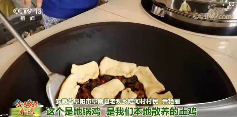 安徽省阜阳市阜南县老观乡陡河村村民 乔艳丽:这个是地锅鸡,是我们本地散养的土鸡,这个是手工馍。我们开这个农家乐,就是想让更多的朋友品尝到我们的特色美食。