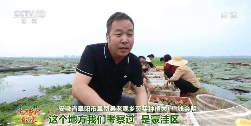 安徽省阜阳市阜南县老观乡芡实种植大户 钱会明:这个地方我们考察过,是蒙洼区,适合我们种芡实的条件,我们总共流转了一万多亩。我们流转土地,一年一亩地是六百,村民在我们这里还干活,一天是一百块钱,一个月大概能挣两千到三千块钱。