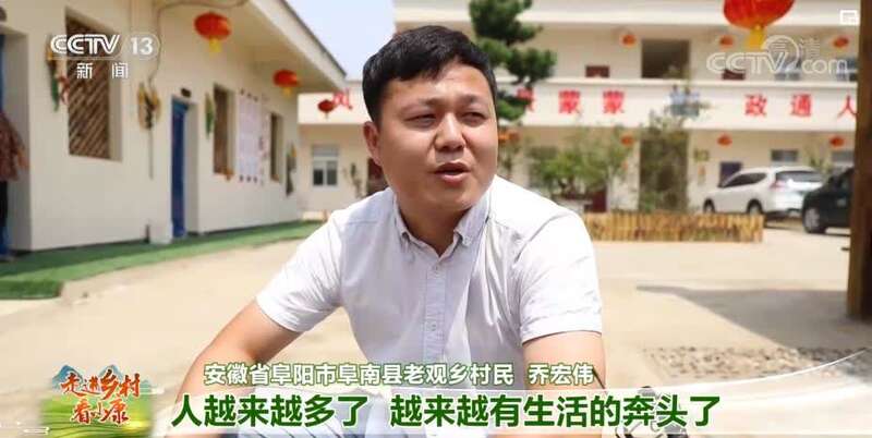 安徽省阜阳市阜南县老观乡村民 乔宏伟:现在我们庄台人越来越多了,越来越有生活的奔头了,就想在家里干。现在在家里也不比外面差,一定会生活越来越好。