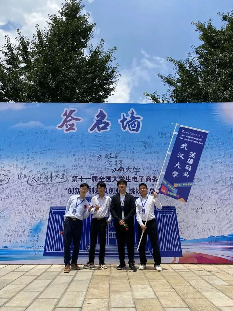 由信息管理学院张李义教授带队,来自不同学院甚至不同学部的五个本科生——全面负责项目工作的队长邴龙志(信息管理学院)、负责前端的李浩民(国家网络安全学院)、负责各项技术的李潇楠(弘毅学堂)、负责公关宣传的刘芳瑞(经济管理学院)以及负责财务和答辩的李世茂(弘毅学堂)组成了英雄码头团队,一同制作了《信天翁跨境电商人才服务平台》项目,擦出了不一样的火花。