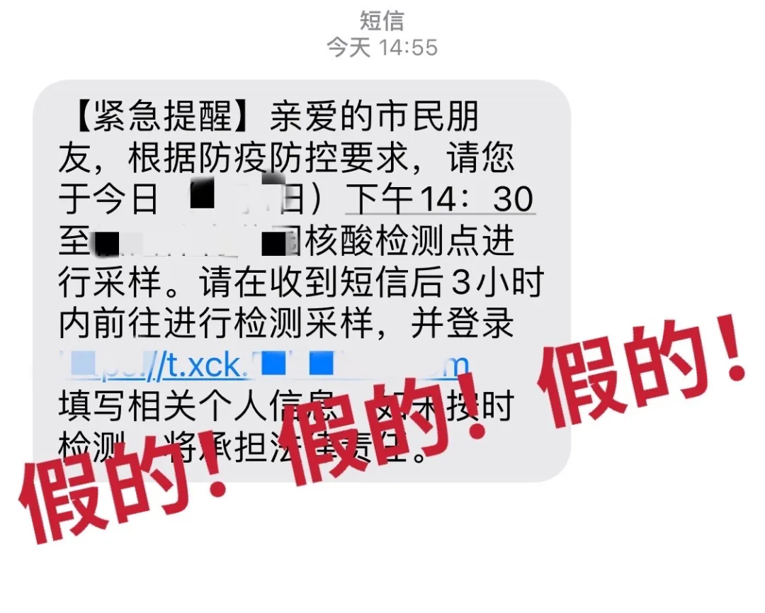 近日,邱先生收到了一条短信,要求他必须在3小时内到XX地点验核酸,否则将要承担一定的法律责任。短信中还附有一条链接,要求邱先生按提示输入个人身份证、银行卡号码、密码等重要信息。
