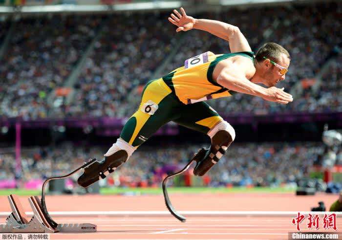 资料图:2012年伦敦奥运会田径比赛中,首次参加健全人奥运会的奥斯卡-皮斯托里乌斯在400米预赛中获得小组第二,成功晋级半决赛。
