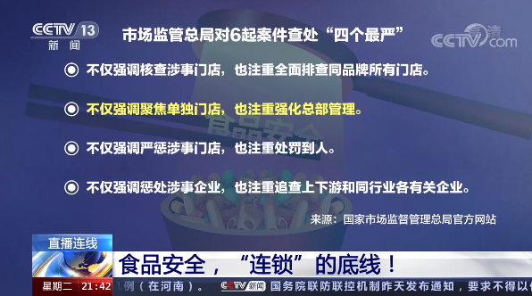 主持人:除了排查、处罚、追查外,市场监管总局公开6起食品违法案件查处情况中还特别提到,对于案件查处,“不仅聚焦单独门店,也注重强化总部管理”,如何理解这一目标?
