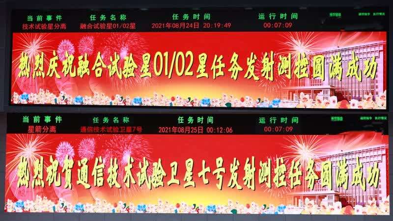 中国青年报客户端北京8月25日电(吕炳宏 中青报·中青网记者 邱晨辉)2021年8月24日19时15分和23时41分,我国先后发射融合试验卫星01/02星和通信技术试验卫星七号,作为我国测控系统主体单位,西安卫星测控中心完成了多点并行测控任务,连续两次亮起成功的大红屏,该中心执行并行发射测控任务的能力再一次得到检验。