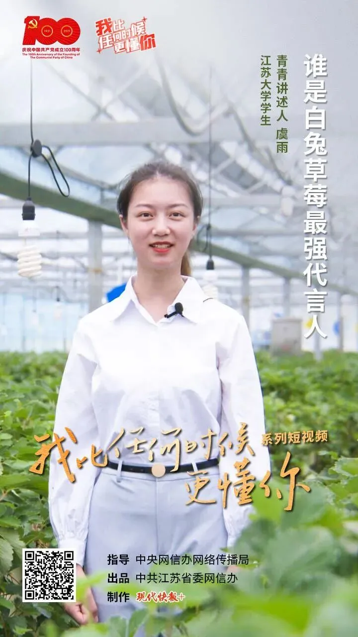 “我比任何时候更懂你”系列短视频第28集《谁是白兔草莓最强代言人?》火热上线,本集青青讲述人是江苏大学学生虞雨。