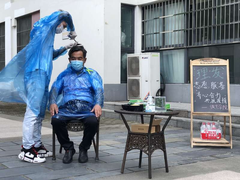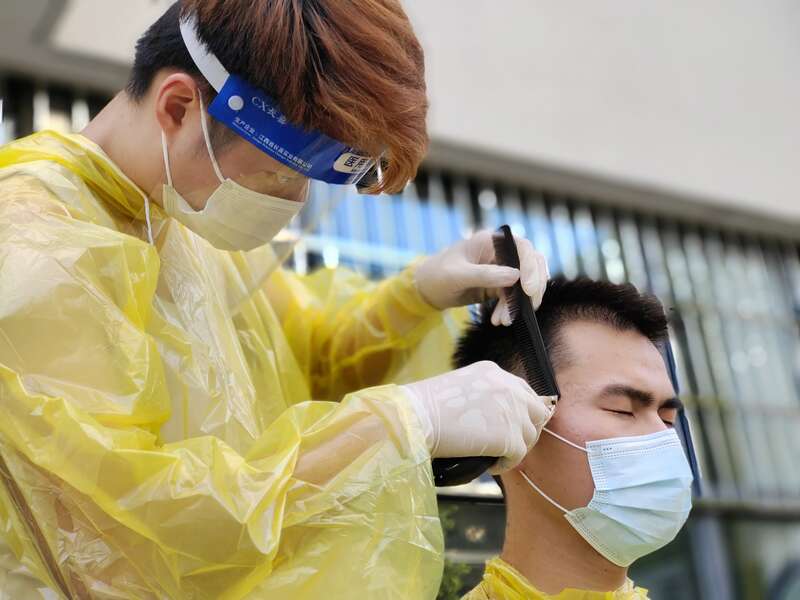 扬州疫情暴发以来,校园实施封底管理已有20余天。理发问题成为不少同学急切需要解决的“刚性需求”。怎样帮助同学们解决理发难题?扬州大学旅游烹饪学院的米业平是一名退伍军人,他在军营中习得一手理发技能,刚好在此时发挥作用。