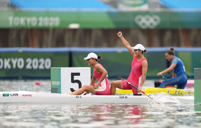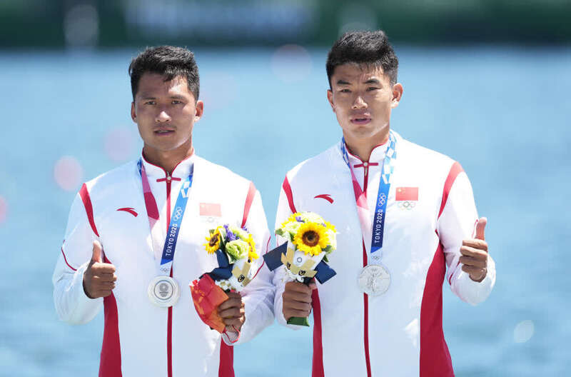8月3日,在东京奥运会皮划艇静水男子1000米双人划艇决赛中,中国选手刘浩/郑鹏飞获得亚军。新华社记者薛玉斌摄
