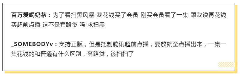 百万爱喝奶茶:为了看扫黑风暴 我花钱买了会员 刚买会员看了一集 跟我说再花钱买超前点播 这不是套路贷 吗 求扫黑