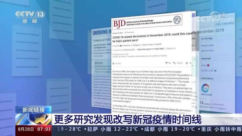 今年1月,意大利米兰大学研究人员在《英国皮肤病学杂志》上报告说,他们从意大利一名年轻女性皮肤病患者2019年11月10日的活检样本中发现了新冠病毒基因序列。