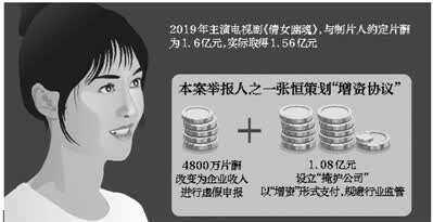 对此,上海市税务局第一稽查局有关负责人表示,经查,郑爽于2019年主演电视剧《倩女幽魂》,实际取得片酬1.56亿元,其中的1.08亿元,制片人通过向郑爽实际控制公司“增资”的形式支付。双方先通过签订所谓“增资协议”来规避行业主管部门对“天价片酬”的监管,然后再通过虚假申报偷逃税款。