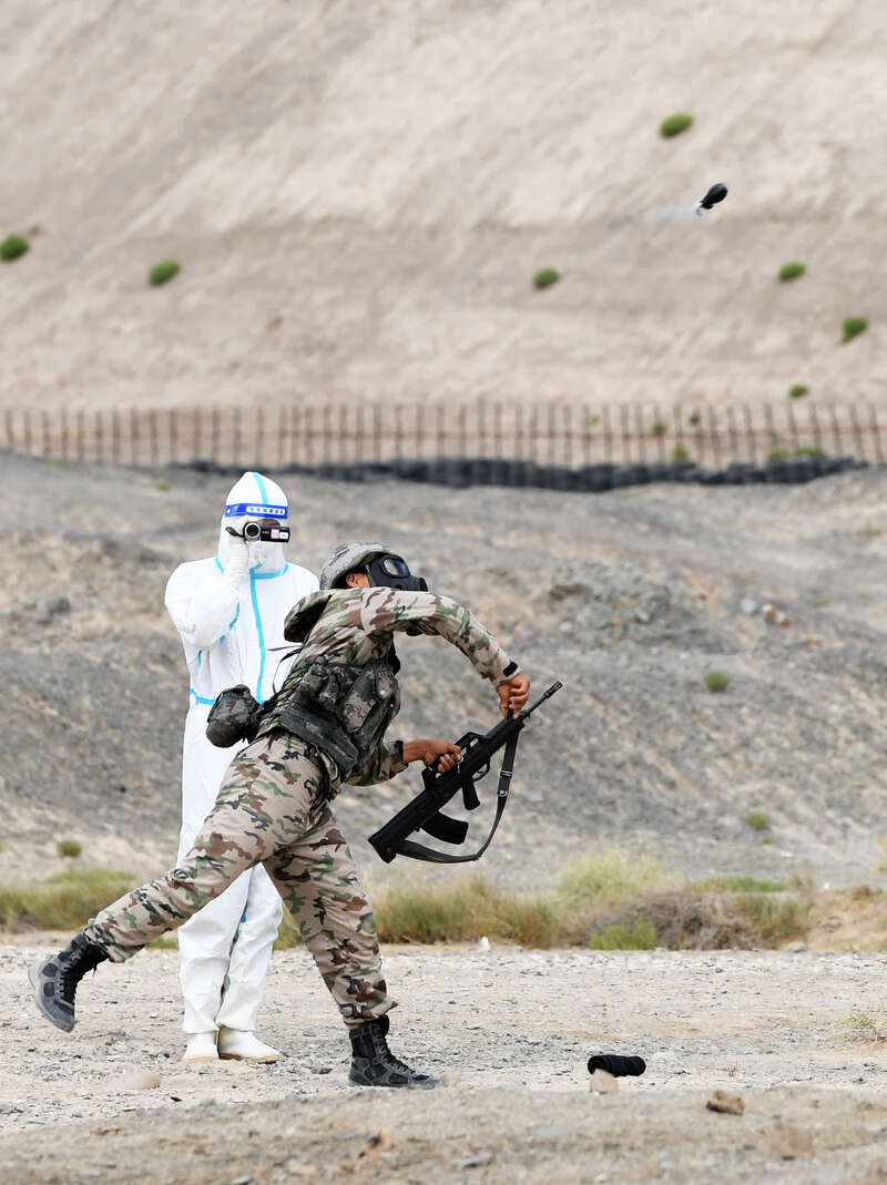 中国陆军参赛队员进行手榴弹投掷。张永进/摄