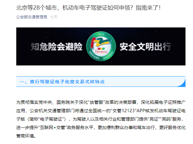 一、推行驾驶证电子化意义及式样特点