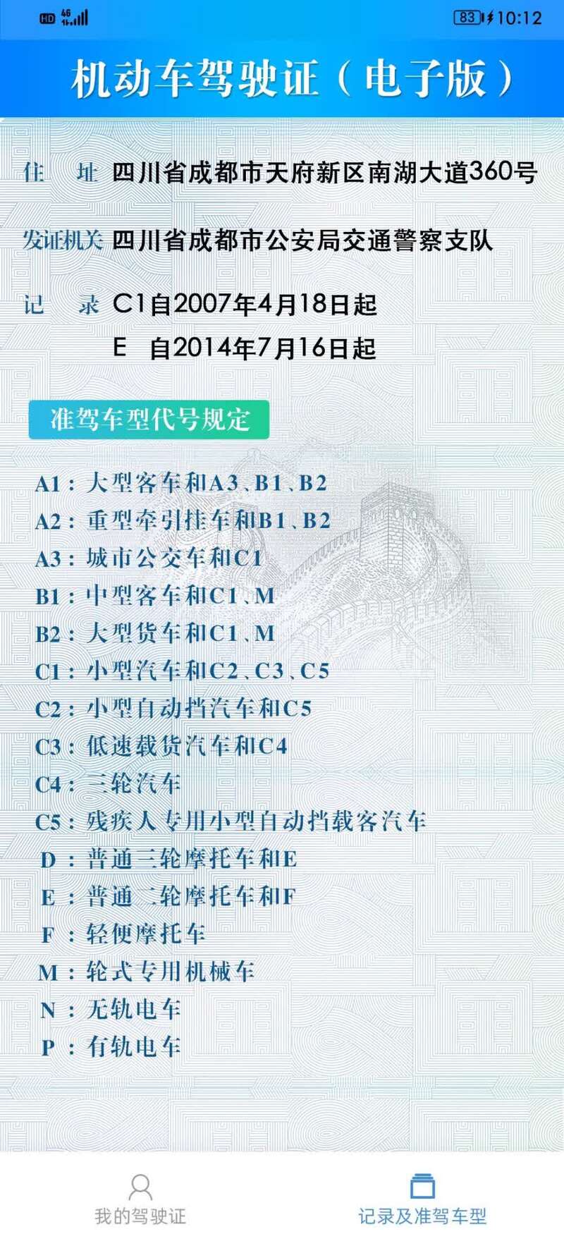 电子驾驶证样证(副页)