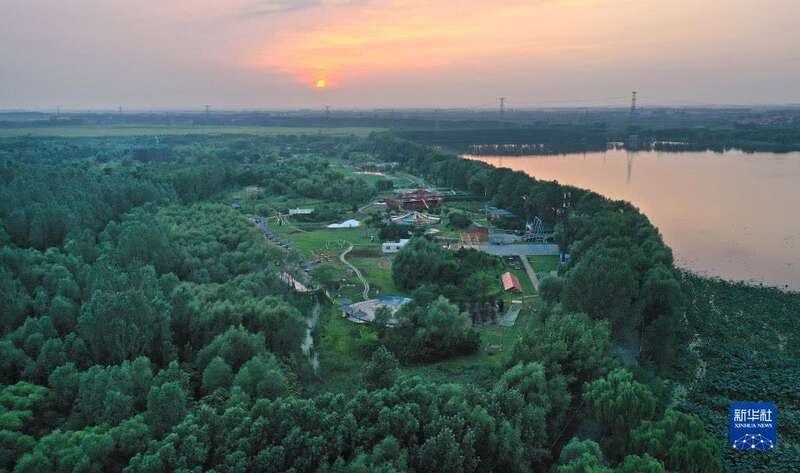 这是8月23日拍摄的辽宁省铁岭莲花湖国家湿地公园(无人机照片)。新华社记者 姚剑锋 摄