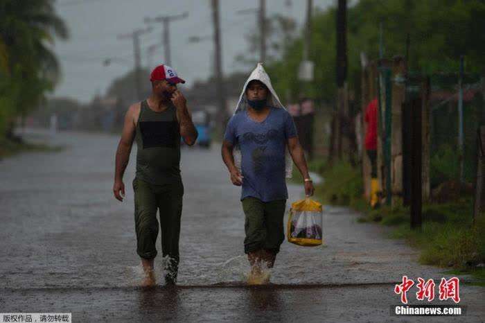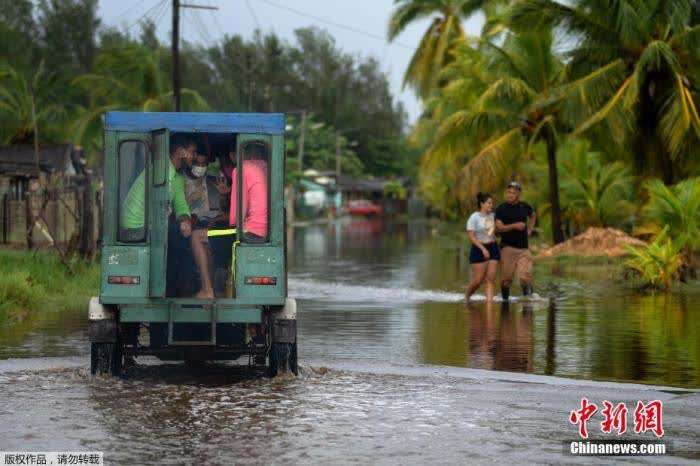 资料图:当地时间8月28日,飓风“艾达”登陆古巴,带来强风降雨天气,古巴阿尔特米萨省Guanimar部分道路被淹。