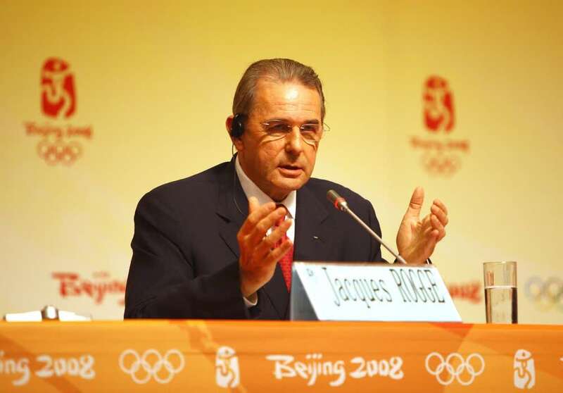 资料图:2008年8月24日,罗格出席北京奥运会闭幕前举行的新闻发布会。新华社记者殷刚摄