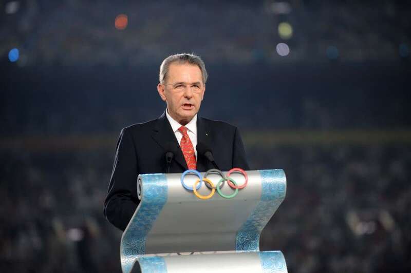 资料图:2008年8月8日,罗格在北京举行的第29届夏季奥林匹克运动会开幕式上致辞。新华社记者李尕摄
