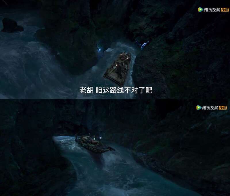 从《龙岭迷窟》到《云南虫谷》,费振翔团队保持着一贯的水准:要说多惊艳谈不上,但还是要比之前《鬼吹灯》网剧的平均水平要高,总体来说是“看得过去”。比如开篇的重头戏是一行人过遮龙山水洞,实景拍摄结合特效使用,还是能够营造出一种真实的探险感。