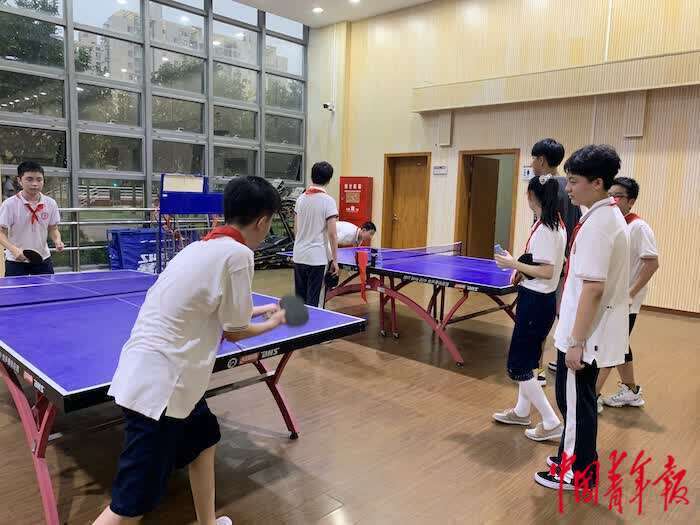 上海市进才中学北校的学生正在打乒乓球。魏其濛摄