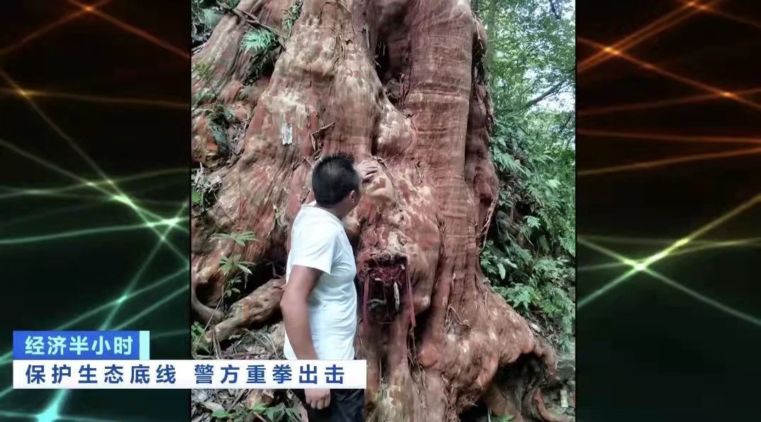 三天时间过去了,经过艰难跋涉,民警终于发现了目标。有人正在给古树包装,准备打包出去,但远远看到有外人靠近的时候,在森林里就一哄而散了。