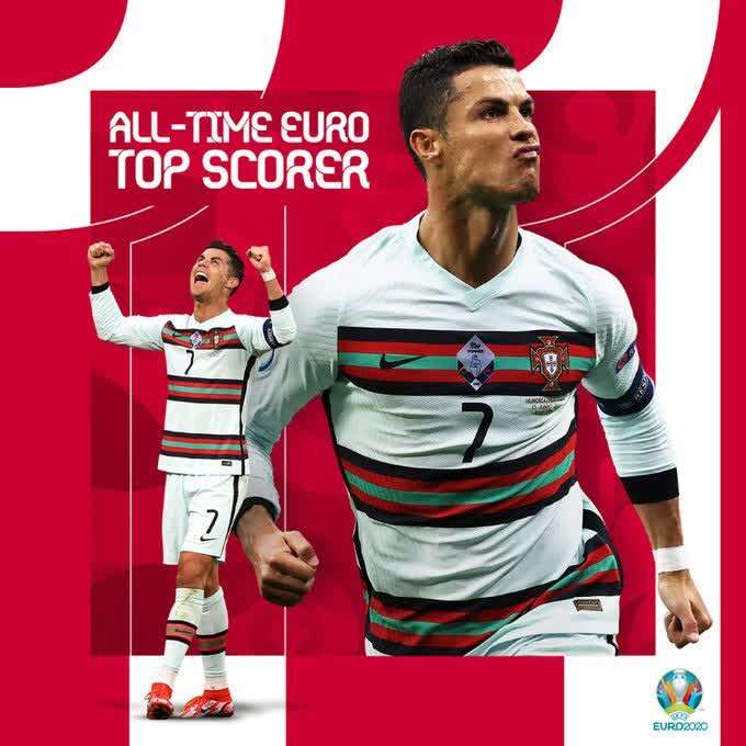 6月,在葡萄牙3:0力克匈牙利的欧洲杯小组赛中,C罗梅开二度。至此,他以11球超越法国球星普拉蒂尼,加冕欧洲杯正赛历史最佳射手。当葡萄牙队结束本届大赛征程时,C罗已将这一数字提升至14粒,捧得金靴的他远远拉开了与第2名之间的距离。