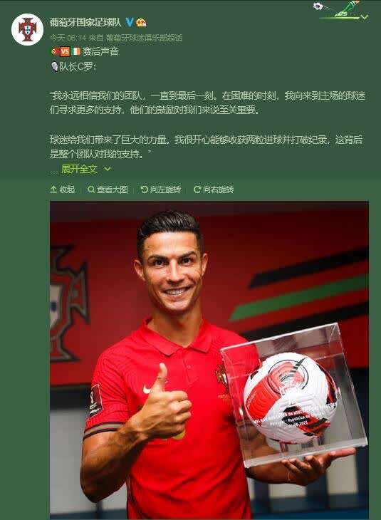 “我很开心能够收获两粒进球并打破纪录,这背后是整个团队对我的支持。(国家队历史射手王)对我来说意义非凡,真的非常开心。我要将进球和胜利献给所有球迷和团队,我们还要继续战斗到最后。”