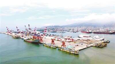 2021年上半年,山东省荣成市石岛管理区石岛新港跨境电商中转业务创历史最好水平。图为大型客滚轮正在进港卸货。