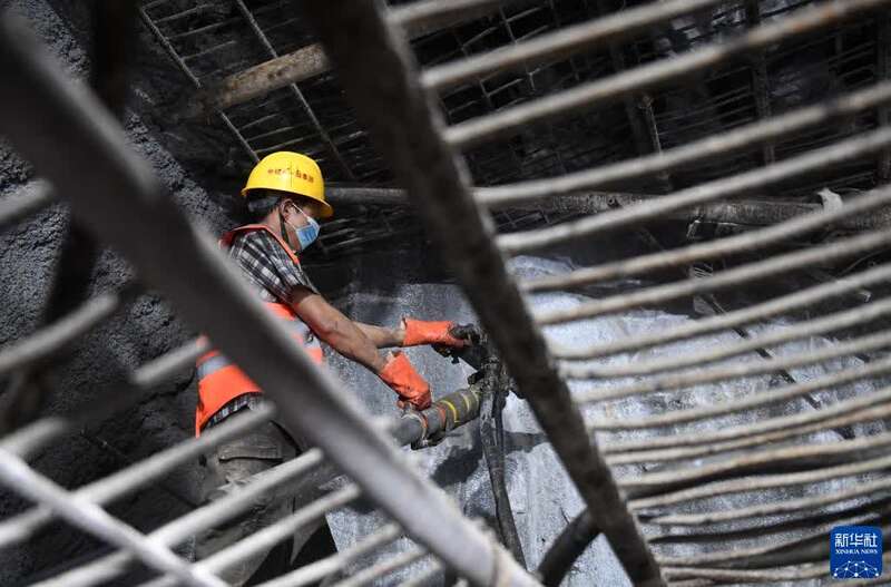 在贵南高铁广西都安隧道,中铁十一局工人在做贯通前最后一次爆破准备工作(9月1日摄)。