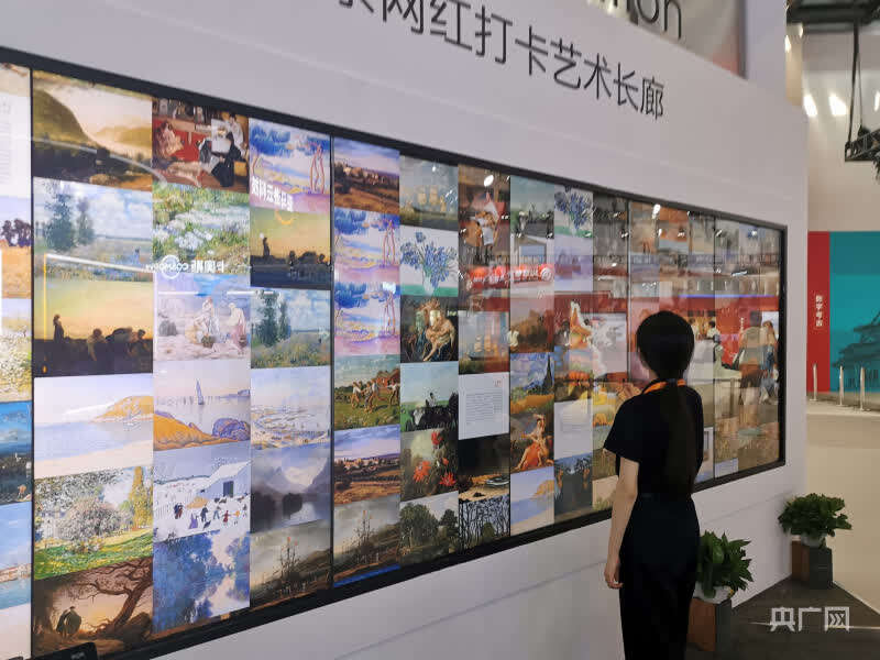 一部手机可以浏览一个博物院,一面墙也可以变身一个博物馆。在故宫展区旁边,一处“北京网红打卡艺术长廊”吸引不少参观者驻足。工作人员用手指点击屏幕上的画面,文物随之放大、旋转。“比如我们点击红赏瓶,可以看到非常清晰的画面;这是景泰蓝的三足盖炉,通过视频多角度展示,细节很清楚,颜色很鲜艳。”