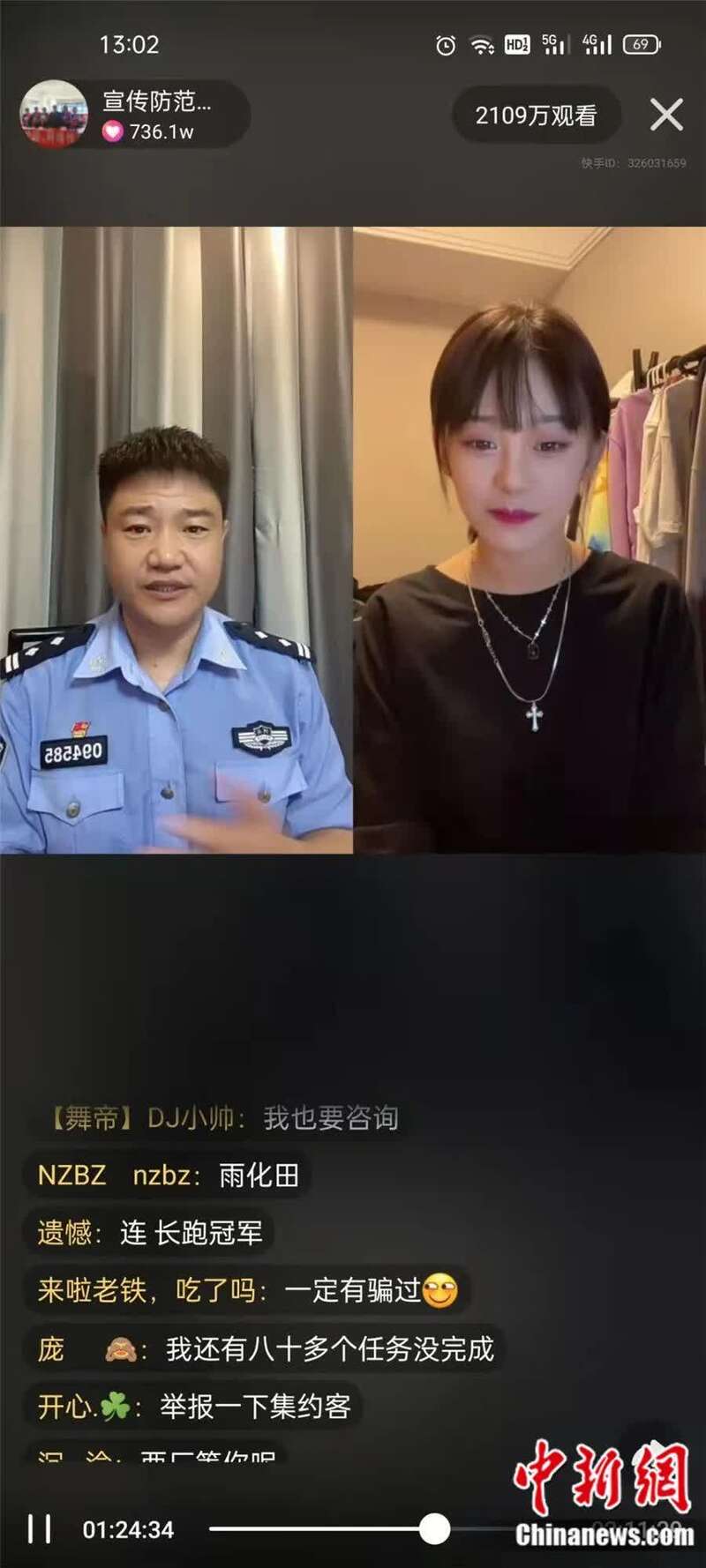 9月3日,河北省秦皇岛市公安局海港分局反电诈警察陈国平在网络平台的直播观看人数超过2100万,参与连麦的主播直播间总观看人数破亿,总互动量达到8000万以上,根据直播进行二次加工的短视频播放量也已破亿,他成了真正的“明星”。