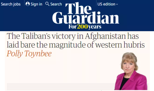 英国《卫报》专栏作家波莉·汤因比认为,阿富汗战争的结局再次将西方的傲慢和自大暴露无遗。