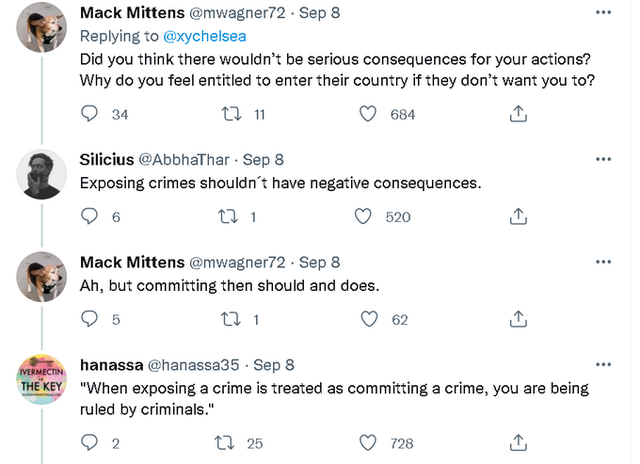 一些曼宁的支持者与这些反对她的人还直接撕了起来。如下图所示,一名曼宁的反对者就表示曼宁应该为她当年泄露机密档案的严重行为承担后果,但一名曼宁的支持者表示曝光战争罪行不应当承担如今这样的后果。随后,那名反对者强调说曼宁犯罪了,但更多曼宁的支持者表示,如果曝光他人的罪行是一种犯罪,那么做出这种裁决的统治者本身就是罪犯。