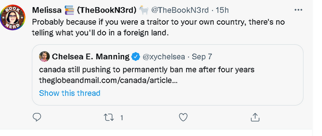 不过,也有一些美国的民族主义者很支持加拿大政府禁止曼宁入境的打算,称任何国家都不该让这么一个“叛徒”入境。