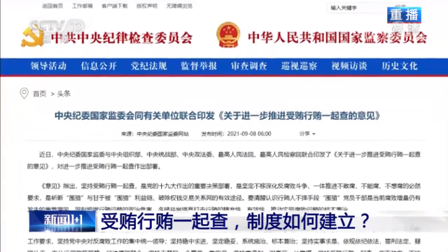 北京师范大学国际反腐败教育与研究中心主任 彭新林:以前查办受贿,更多的是办案机关参与,《关于进一步推进受贿行贿一起查的意见》出台以后会涉及到多个部门共同参与,意见也明确强调,相关部门相关机关要各司其职、各负其责,要加强协助配合。它会涉及到比如市场监督管理、发展改革、住房城乡建设、司法行政等相关单位,可能以后都要参与进来,可能会更加重视对行贿犯罪的综合治理。