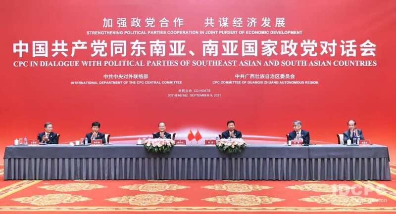 中国青年报客户端讯(中青报·中青网记者 谢洋)9月9日,由中央对外联络部和中共广西壮族自治区委员会共同主办的中国共产党同东南亚、南亚国家政党对话会在南宁举行。对话会以“加强政党合作,共谋经济发展”为主题,来自东南亚、南亚国家40多个政党的领导人、青年组织负责人以及政府代表逾300人通过视频连线方式参会,东南亚、南亚国家约30位驻华使节等高级外交官现场出席会议。