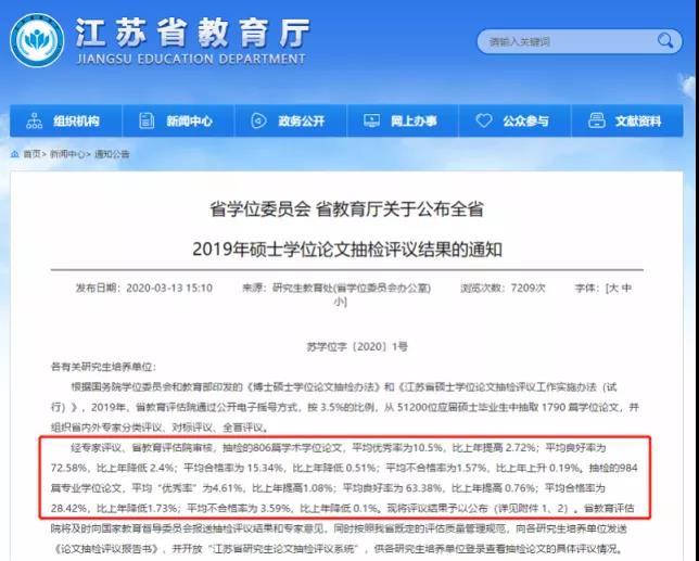 2020年3月,江苏、广东两省相继发布2019年硕士学位论文抽检评议结果的通报,江苏抽检出144篇不合格论文,广东40篇论文不合格或存在问题。