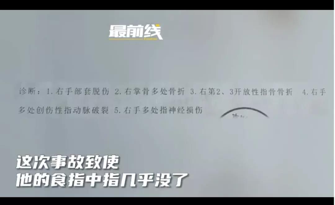 在实习过程中因意外导致手被卷进机器中,右手落下残疾。