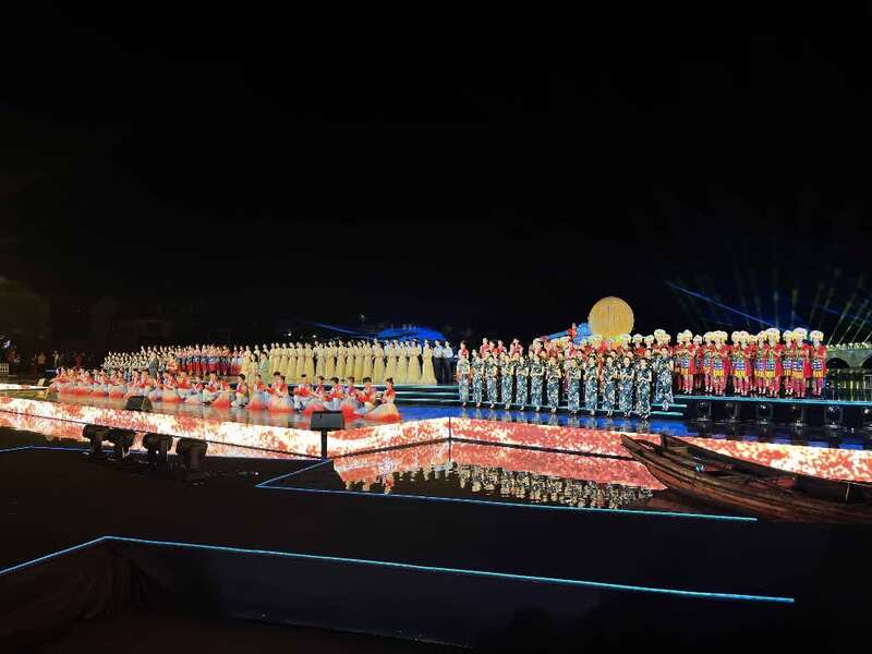 伴随着《同一首歌》的优美旋律,实景演出拉开帷幕。演出分“湖光映月”“天涯此时”“奋楫逐浪”“再启新程”四个篇章,精彩演绎呈现“花开同心夜周庄,两岸同根共此时”的古镇之美。“自1990年10月,首家台资企业落户昆山以来,已有超5500个台资项目在昆落地生根,投资总额超660亿美元,10万台商台胞在这里安居乐业。”周伟说。、