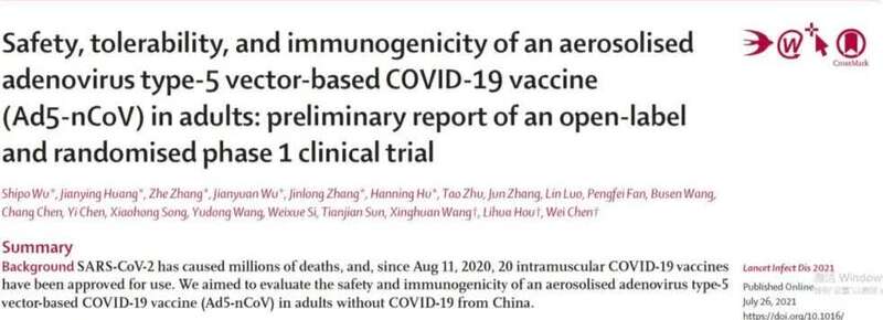 作为全球首个雾化吸入新冠疫苗Ad5-nCoV,自然引起了全球普遍关注。此前,此项临床试验共招募130名受试者,设计为随机化的开放性I期临床试验,在武汉中南医院开展,旨在评估雾化吸入剂型的Ad5-nCoV在18岁及以上健康成年人中的安全性和免疫原性。