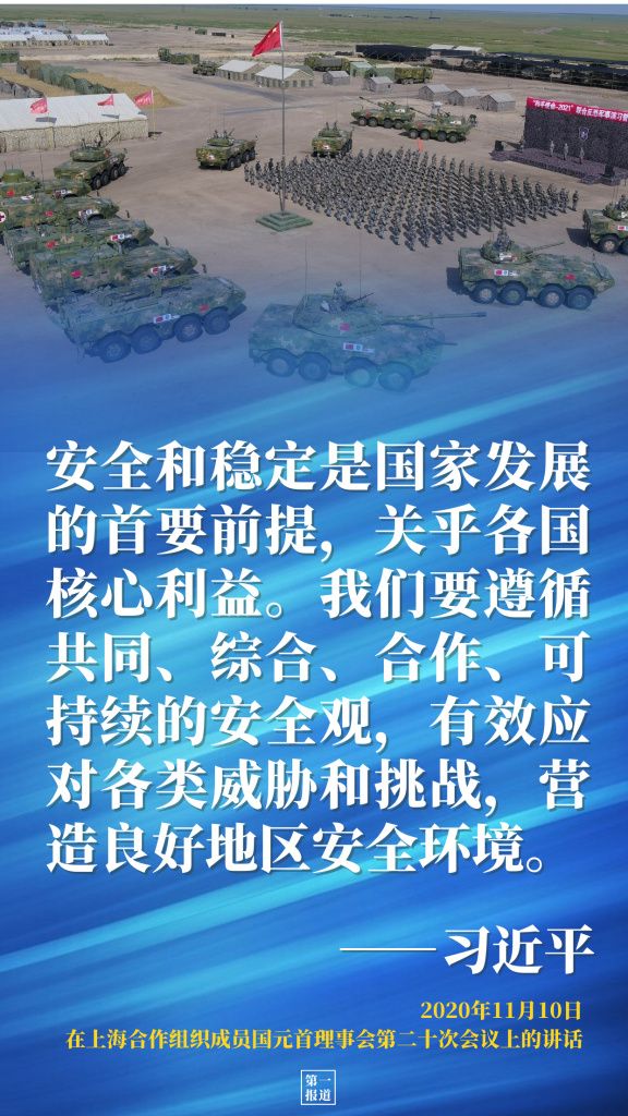 2020年11月10日,习近平主席在上海合作组织成员国元首理事会第二十次会议上发表重要讲话,首次在上合组织框架内提出构建“卫生健康共同体”“安全共同体”“发展共同体”“人文共同体”的重大倡议。