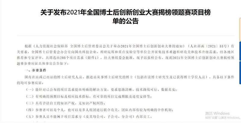 2021年全国博士后创新创业大赛是我国博士后制度实施以来举办的规模最大、覆盖面最广的全国性博士后创新创业赛事,作为大赛四大赛事组别之一,“揭榜领题”赛是以需求和问题为导向、促进博士后人才向企业一线流动的创新模式,旨在促进博士后科研成果转化,推动产学研深度融合,有效激发博士博士后人才及团队在解决制约产业发展技术难题中发挥更大作用。
