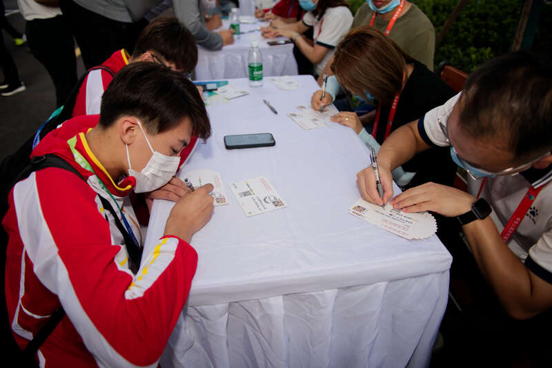 在全运村商业街有着更多惊喜:手写满载祝福和心愿的限量版主题明信片寄回家乡,分享全运村里的故事;非遗文化展厅里,可以学剪纸、做香囊,感受“中国风”式的中秋节;在反兴奋剂教育拓展基地,可以参与激烈的体育精神挑战赛;还可以和伙伴们一起来到志愿者服务中心,在精心布置的打卡点拍照留念,留下中秋感言……