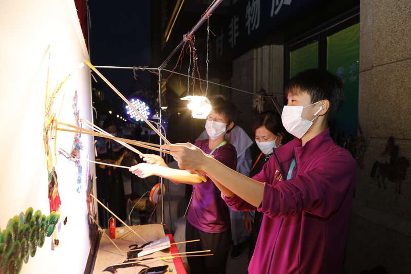 华灯初上,光影交错,两张桌子、一展幕布撑起一座别样的舞台——全运村非遗展厅里,“匠心喝彩竞佳绩 非遗邀您度中秋”庆中秋主题活动上演的皮影戏,引来阵阵喝彩。