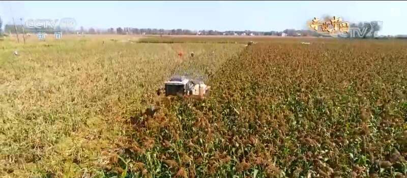 您现在看到的是位于河南邓州的15000亩高粱地。红彤彤的高粱穗颗粒饱满,一台台收割机正在作业。这两年,当地改变传统的种植模式,高粱从选种到田间管理再到收割都由合作社统一托管,降低了种植成本,同时也提高了高粱品质。