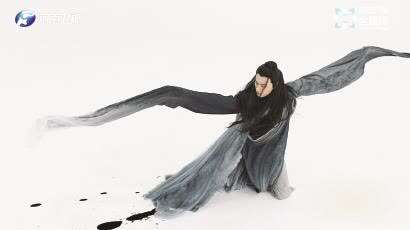 中秋月圆,与月遥相对望的书法家王献之在静思间妙手偶得,起身赋诗一首。他着墨挥毫,仿佛舞人跃然于纸上,中国歌剧舞剧院舞蹈演员陈炳睿化作书写者笔端的墨点,抖袖似泼墨,腾空抛袖与苍劲有力的笔法相融,展现书法艺术的精妙和中国舞的飘逸。舞作《墨舞中秋帖》竭力挖掘献之书法中“极草纵之致”“一笔书”等特质,使人感叹墨舞流韵空中挥毫,实为创意妙门。
