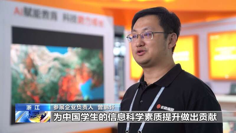 参展企业负责人 曾鹏轩:利用新型技术来赋能传统行业发展是我们关注重点。通过AI技术提升青少年编程能力的普及,为中国学生的信息科学素质提升做出贡献。AI老师辅助真人教师完成教学可以从根本上解决优质教育普惠的人力门槛和成本门槛,为推进教育普惠提供新思路。