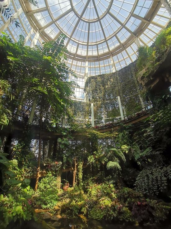 兰花馆是最清新淡雅的温室,兰花在中国有两千多年的栽培历史,具有较高的药用、观赏和研究价值。该馆以塑石、溪流、廊道等园艺元素,还原兰花的自然生长环境和生态群落模式。馆内收藏有地生和附生兰科植物600余种,其中附生的石斛属植物400余种;还收集保育暖地杓兰\针叶石斛等珍稀兰科植物。