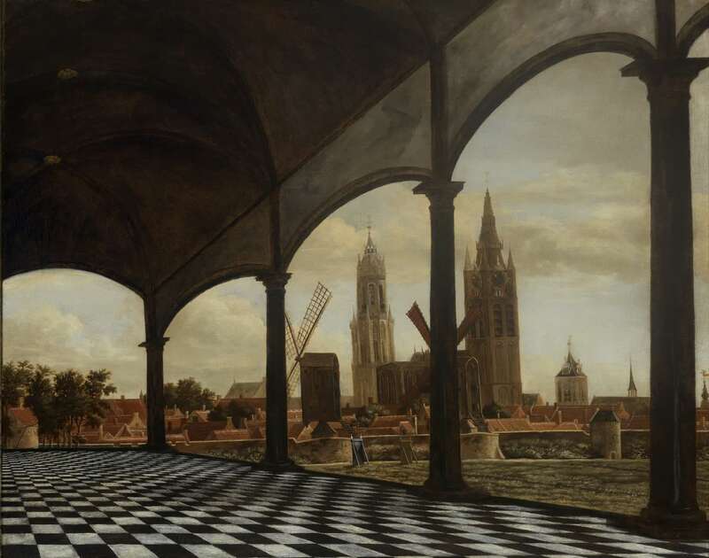 沃斯梅尔,《想象中的凉廊的代尔夫特》,1663年