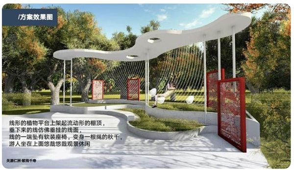 中国人民大学设计艺术学专业的赵玉婷和团队成员就从仁洲村手工线面制作中的晾晒场景里获得设计启发。“线面就像乡村中的中老年人,他们虽然不一定年富力强,但极具生存经验,富有生活智慧,他们是乡村振兴中柔软而坚韧的重要力量。”在该团队作品《关源仁洲·献线千寿——仁洲村艺术营造方案》中,以线面为造型元素的秋千成为观景平台的亮点之一。